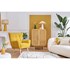 Fauteuil en tissu effet velours jaune moutarde et bois clair avery