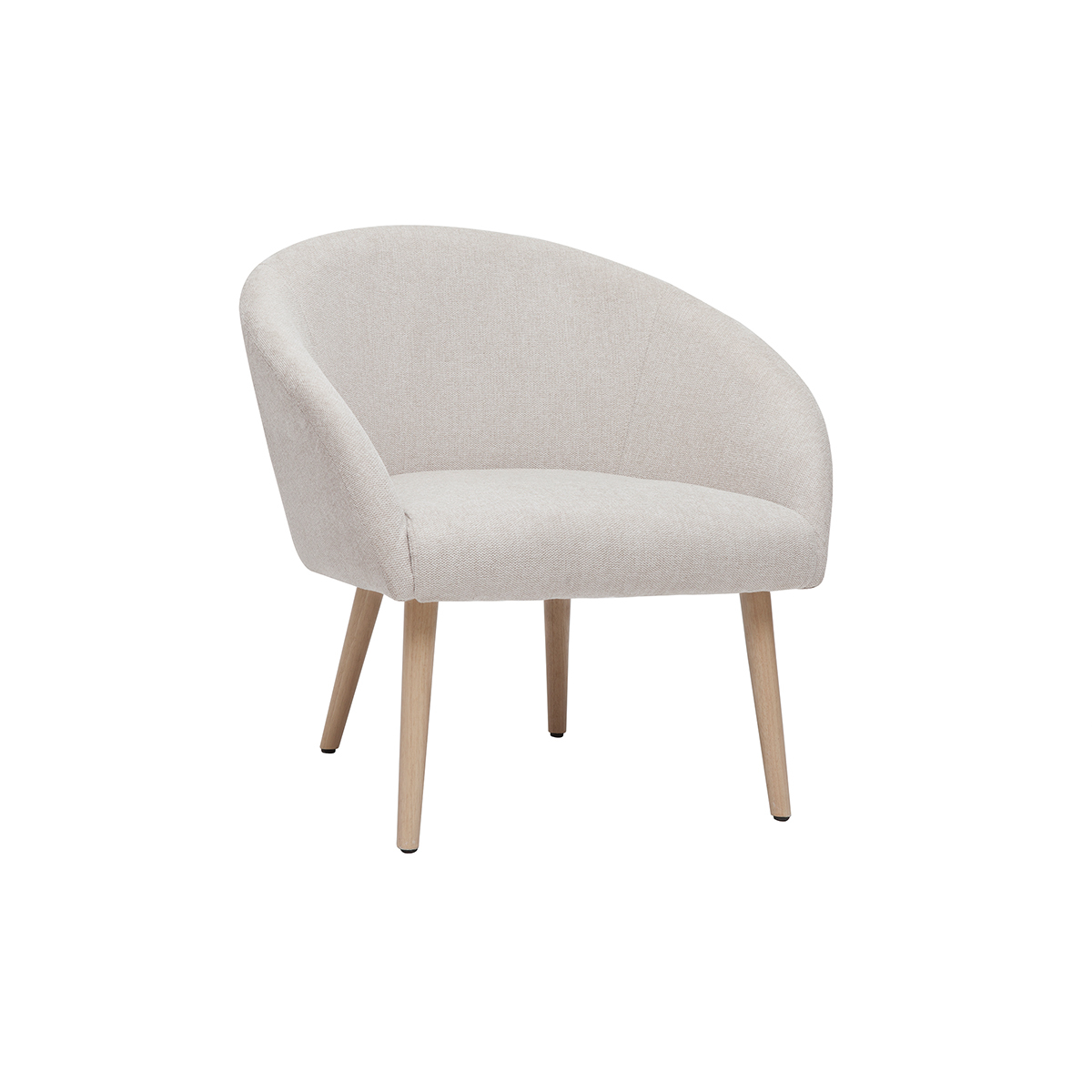 Empreintes de douceurs, les lignes minimalistes dessinent avec simplicité des volumes épurés aux bords lisses et galbés. Tout en rondeur, le siège habillé d'un tissu effet velours texturé beige forme un harmonieux tandem avec le piètement en bois clair . À la fois élégant et épuré, accueillant et chaleureux, ce fauteuil appelle à la détente. Si dans un décor à l'inspiration scandinave en quête d'esprit cocooning OLIVIA sera du plus bel effet, son coloris et sa silhouette intemporels s'intégreront facilement dans de nombreux styles d'intérieur.