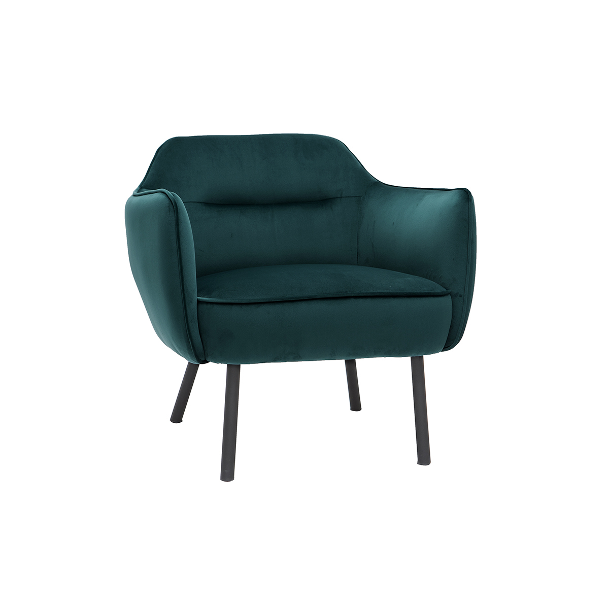 Fauteuil en tissu velours bleu pétrole et métal noir laurens