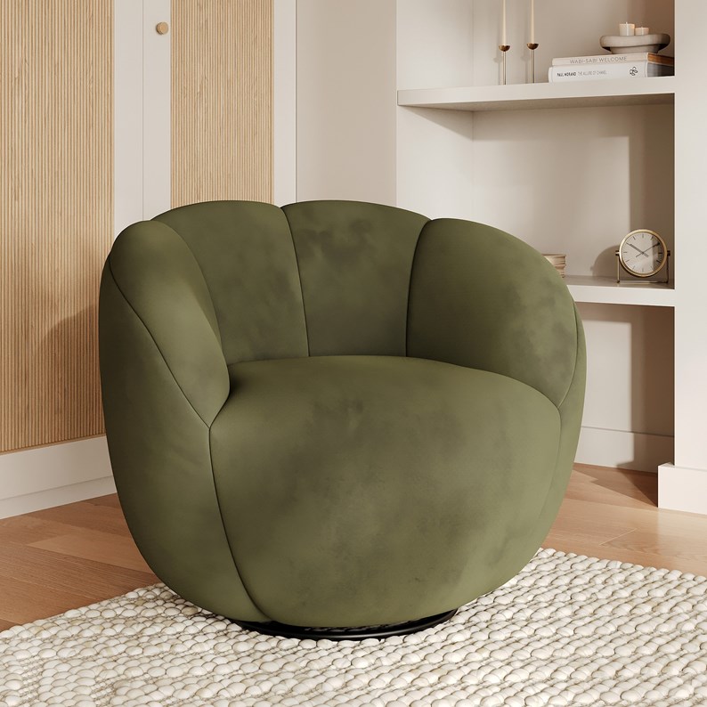 Fauteuil pivotant en velours vert olive foncé - ysé