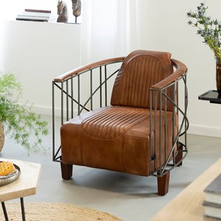 Fauteuil style aviateur en cuir et métal