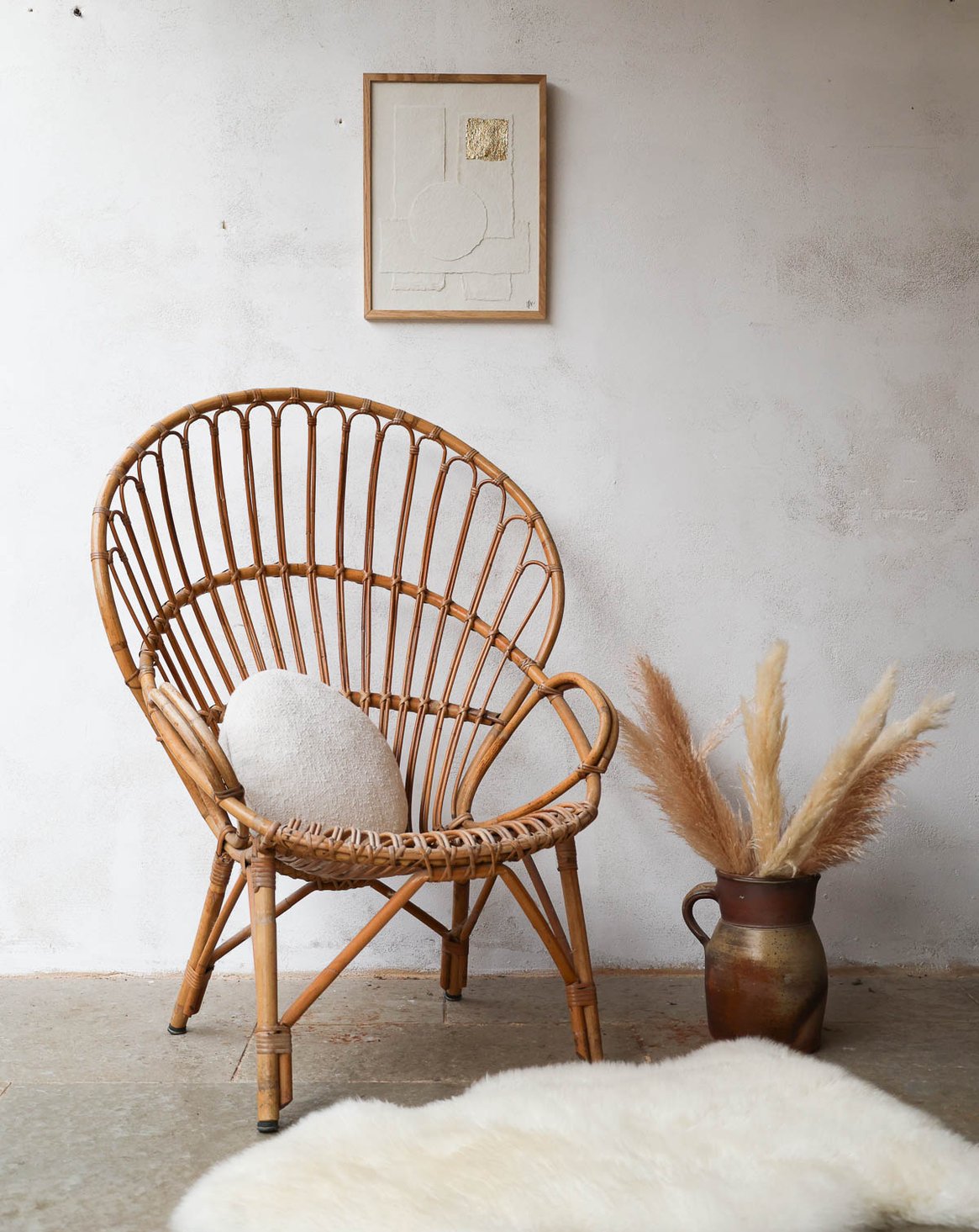 Grand fauteuil en rotin clair n°692