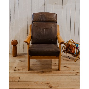 Jakob, le fauteuil en bois et cuir n°795