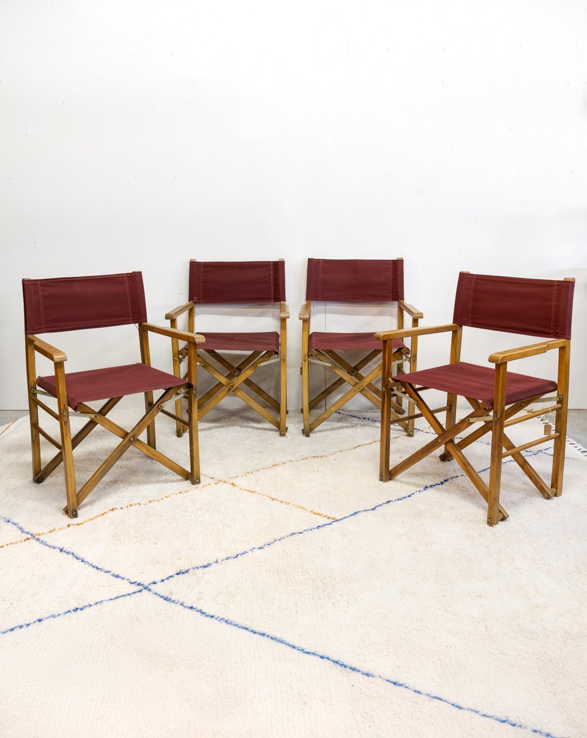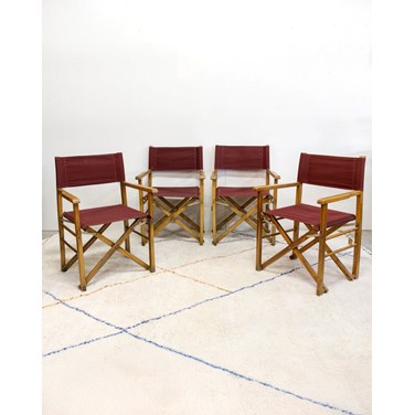 Invitez le charme du cinéma chez vous avec ce lot de quatre chaises anciennes en bois, habillées d'un tissu bordeaux sur le dossier et l'assise. Leurs proportions et leur assise confortable en font des sièges polyvalents pour une salle à manger, un coin lecture ou un salon au style rétro. La structure en bois apporte chaleur et élégance, tandis que la couleur bordeaux souligne une atmosphère vintage assumée. Quelques marques d'usage qui font son authenticité.