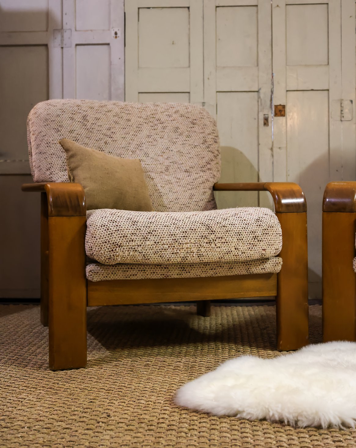 Paire de fauteuils en bois et laine n°4