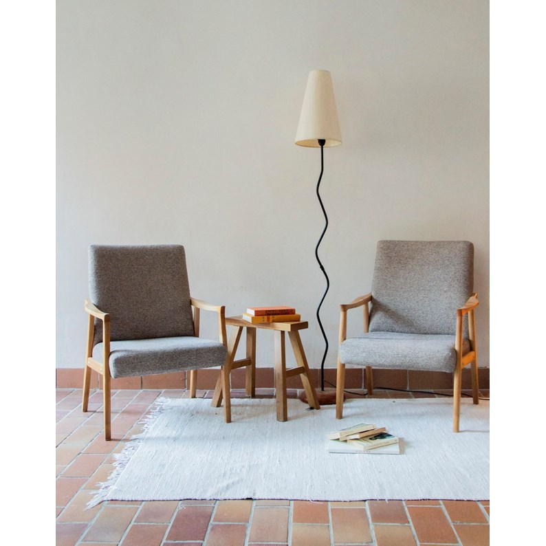 Apportez une touche d'élégance à votre intérieur avec cette paire de fauteuils en bois au design raffiné. Avec leur tissu beige gris et leurs accotoirs incurvés, ils offrent un confort inégalé tout en ajoutant du charme à votre décoration. Parfaits pour un coin lecture ou un salon accueillant, ces fauteuils s'intègrent harmonieusement dans tous les styles d'aménagement. Créez un espace convivial et chaleureux grâce à cette paire de fauteuils intemporels.