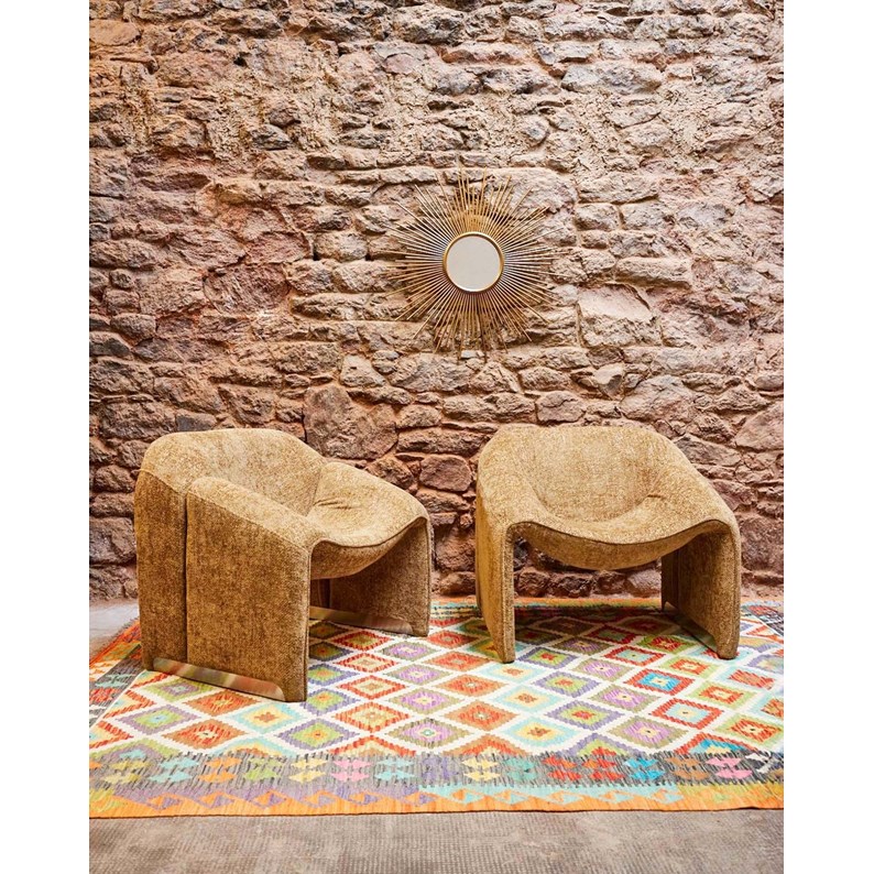 Sublimez votre intérieur avec cette paire de fauteuils design en tissu marron et beige, reposant sur des pieds en aluminium, pièces uniques au style contemporain. Leur assise confortable et leurs proportions équilibrées en font des éléments centraux pour structurer un salon et inviter à la conversation. Le contraste entre la chaleur du textile et la finesse du métal crée une atmosphère sobre et raffinée, parfaitement adaptée à une décoration contemporaine et accueillante.