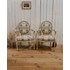 Adoptez ce lot de deux fauteuils style Empire aux lignes structurées, reposant sur une élégante armature en bois peint en blanc/gris. Le dossier, les accoudoirs et l'assise sont gainés d'un tissu à motifs géométriques beiges, dorés et noirs, qui créent un équilibre raffiné entre graphisme et classicisme. Leur assise confortable convient parfaitement à un salon, une chambre ou un coin lecture pour une atmosphère chaleureuse et sophistiquée. Quelques traces du temps présentes.