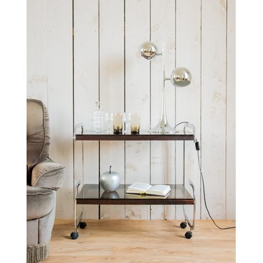 La desserte, aussi appelée table servante, voit le jour au XVIIème siècle. À l’époque, elle est utilisée pour servir et desservir les plats et la vaisselle aux cours des repas. Munie de roulettes, elle se transfère d’un endroit à l’autre sans effort et permet de débarrasser la table plus rapidement en réduisant le nombre de trajets entre la salle à manger et la cuisine. C’est par sa grande utilité que la desserte est devenue un élément important du mobilier, servant aussi à servir le thé ou le petit-déjeuner. Cette petite table d’appoint mobile a su trouver au fil des siècles une place de choix dans notre intérieur.