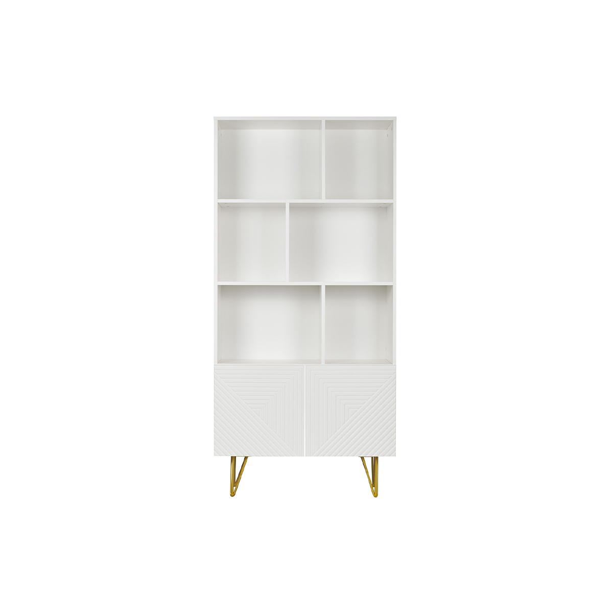 Bibliothèque gravée blanc mat et métal doré 2 portes l86 cm ozen