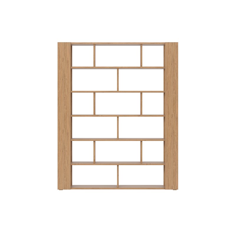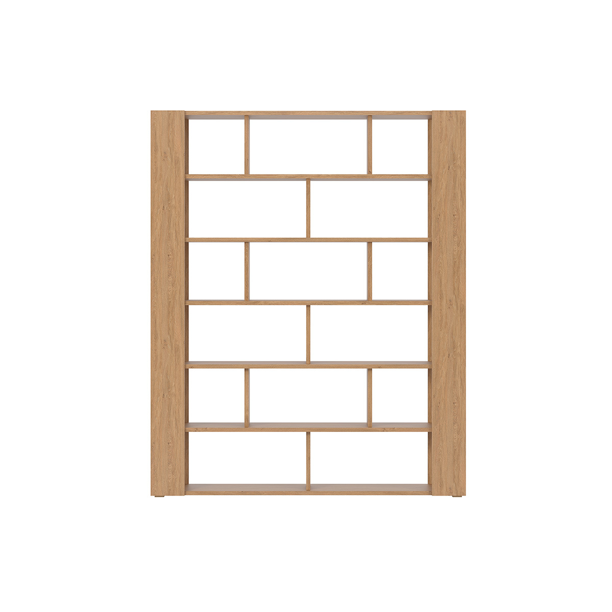 Cette bibliothèque scandinave comprend pas moins de 15 niches pour organiser toutes les affaires de la maison. Composée d'une structure en mélaminé finition chêne, cette bibliothèque ouverte accueillera livres, boîtes de rangement, lampes et objets déco avec style.