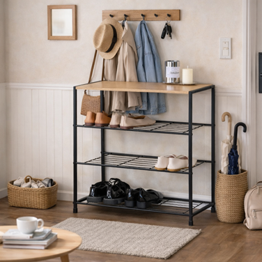 Pratique et compact, il permet de ranger efficacement vos chaussures tout en gardant une entrée ordonnée et accueillante. Son design ouvert facilite l'accès et la ventilation, tout en conservant une esthétique légère qui n'encombre pas l'espace.