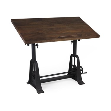 La table de type architecte de la collection Quinquenelle a un design minimaliste et est de style industriel. Elle est fabriquée à la main en bois de manguier massif et du métal noir.