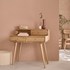 Le bureau en mindi massif de 90 cm, avec son miroir amovible, trois tiroirs, niche pratique et pieds compas, apporte une élégance fifties et une fonctionnalité raffinée à votre intérieur. Caractéristiques : Matière : Mindi - Couleur : Marron – Hauteur : 90 cm – Largeur : 90 cm – Profondeur : 55 cm - Poids : 21 kg - Garantie : 5 ans - Montage : Pieds à assembler.