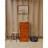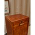 Adoptez ce classeur en bois au charme sobre et élégant, qui mêle extérieur chaleureux et intérieur en bois plus clair pour une présence raffinée dans un bureau ou une entrée. Son profil vertical et ses quatre étagères offrent un rangement optimisé pour dossiers et petits objets, tandis que la serrure avec clé et le rideau glissant garantissent une utilisation sûre et discrète. Quelques marques d'usage et une étagère légèrement tordue.
