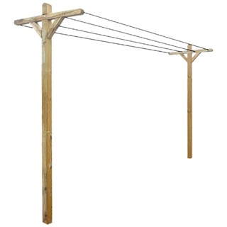Ses poteaux chanfreinés, de dimension 7x7 cm et de hauteur 1,85 m, lui donnent un aspect chaleureux et authentique. Vous pourrez fixer les fils à la hauteur que vous souhaitez pour que l'étendoir soit adapté à votre taille.