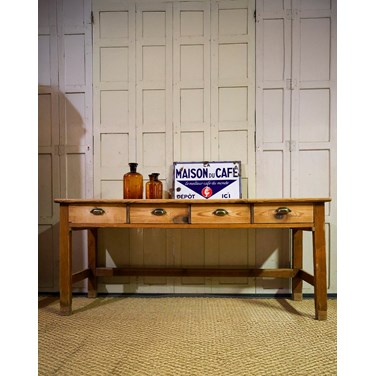 Apportez une touche campagne élégante avec ce buffet en bois pitchpin aux lignes chaleureuses et à la silhouette équilibrée. Ses quatre tiroirs proposent un rangement généreux, idéal pour la vaisselle ou le linge de maison, tandis que les poignées métalliques apportent un contraste graphique et contemporain. Le meuble a été légèrement rehaussé, ce qui affine sa présence et facilite l'accès au contenu, et s'intègre naturellement dans une salle à manger ou une entrée baignée de lumière.