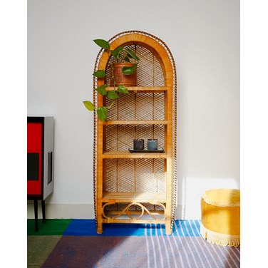 Invitez la douceur du naturel avec cette bibliothèque en osier, dont le haut arrondi dessine une silhouette élégante et aérienne. Ses quatre étagères, aux proportions étudiées, accueillent aussi bien des beaux volumes que des objets décoratifs, tandis que le quadrillage en osier sur l'arrière et les côtés laisse filtrer la lumière et crée une ambiance chaleureuse et légère. Compacte et élancée, elle se glisse facilement dans un coin du salon, d'une chambre ou d'une entrée pour composer une mise en scène raffinée.