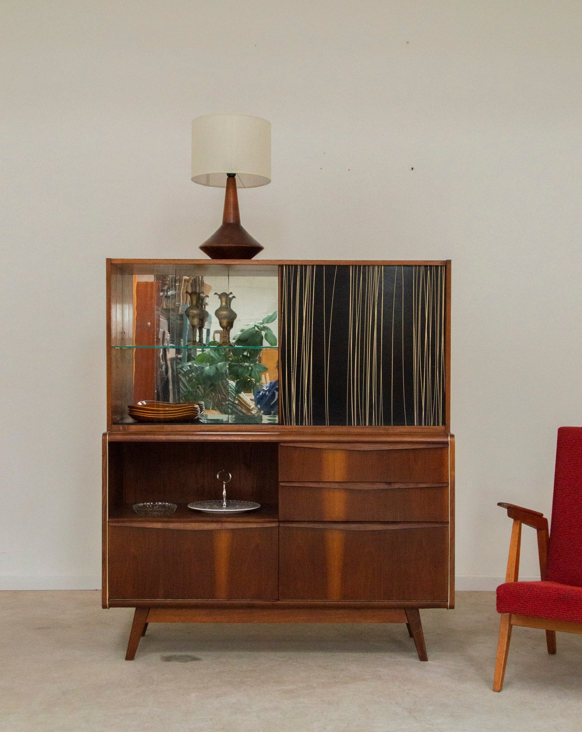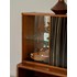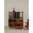 Apportez une touche élégante et chaleureuse avec cette vitrine en bois foncé, au jeu de contrastes entre une porte coulissante noire soulignée de liserés dorés et la patine profonde du bois. Ses proportions équilibrées offrent un bel équilibre entre présentation et rangement : une niche d'exposition, deux tiroirs pratiques et deux placards abattants pour vaisselle ou livres. Sa silhouette sobre et raffinée s'intègre aussi bien dans une salle à manger que dans un salon contemporain. Un abattant fonctionne moins bien.