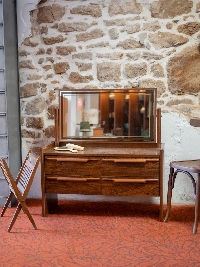 Le terme “coiffeuse” apparaît au début du XXème siècle, alors que le meuble existe depuis l’Antiquité. Composée d’une tablette, d’un ou plusieurs miroirs et de nombreux tiroirs, la coiffeuse est un meuble de rangement, mais surtout un lieu de préparation où l’on se maquille, se parfume et se coiffe. Si à l’origine, ce mobilier correspond aussi bien aux hommes qu’aux femmes, il devient très vite l’incarnation du mystère féminin. La coiffeuse peut en effet se munir de cachettes secrètes, afin de recevoir la correspondance intime. Aujourd’hui, la coiffeuse revient sur le devant de la scène et fonctionne très bien dans tous les style d'intérieurs !