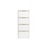Le meuble d?entrée KIRK se distingue par son design vertical et ses quatre compartiments basculants, chacun doté d?un système de rangement astucieux permettant de loger plusieurs paires de chaussures. Ce meuble est idéal pour organiser efficacement votre collection de chaussures tout en maintenant un espace propre et ordonné. Les poignées en finition bois clair créent un joli contraste avec le blanc laqué du meuble, apportant une note chaleureuse et naturelle à l?ensemble.
