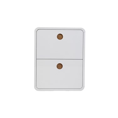 En panneaux de fibres de bois, il bénéficie d'une finition blanc brillant à laquelle s'ajoute une poignée circulaire en frêne . L'association des deux s'avère un succès. Facile à vivre, ce meuble se pose sur le sol et pour assurer un meilleur maintien, ce meuble doit être fixé au mur à l'aide d'une attache métallique fournie.