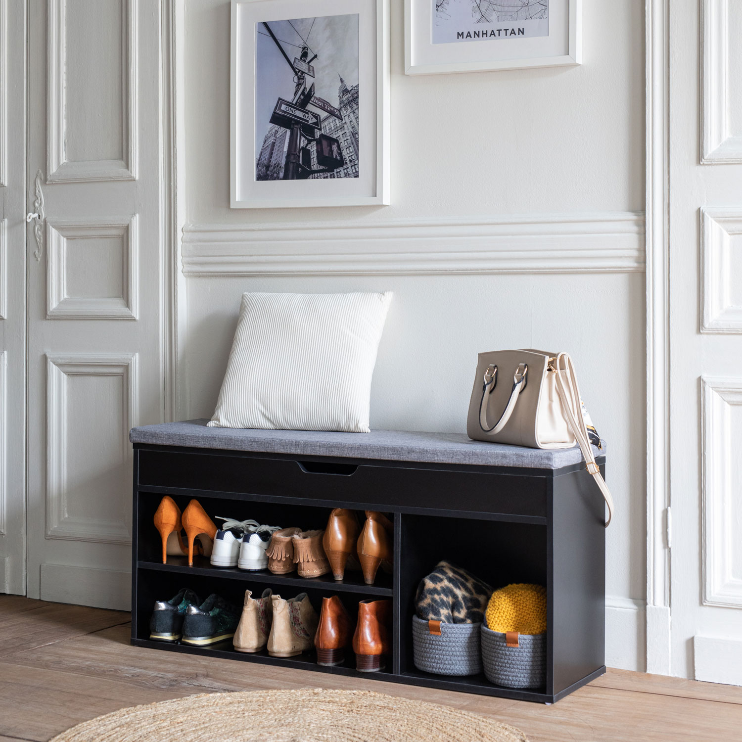 Meuble à chaussures trois casiers avec coffre noir alan