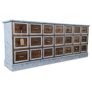 On valide les 21 tiroirs et son plateau de 192 centimètres qui font de ce buffet industriel un meuble imposant de caractère.