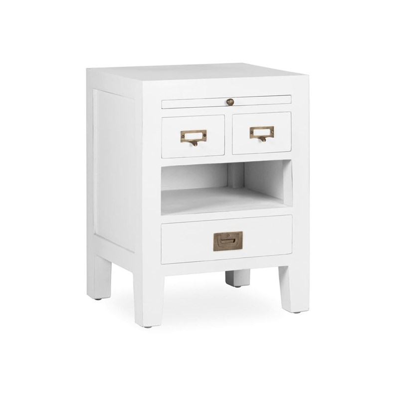 Table de chevet de la collection Mélicia fabriquée à la main en bois de mindi laqué blanc. La  En savoir plus