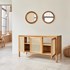 À la recherche du meuble de salle de bain idéal pour votre espace détente ? Ne cherchez plus ! Notre meuble sous vasque en teck massif et cannage de 145 cm, avec trois portes, allie naturel et modernité pour une préparation quotidienne tout en élégance. Caractéristiques : Matière : Teck - Couleur : Naturel – Largeur : 145 cm – Profondeur : 50 cm - Hauteur : 79 cm - Poids : 46 kg - Garantie : 5 ans - Montage : Livré monté.
