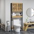 - Meuble WC dessus toilettes style naturel en bambou et MDF noir pour apporter du charme à votre pièce