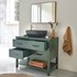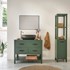 Vous recherchez le compromis idéal entre originalité et praticité ? Ce meuble de salle de bain vert est fait pour vous ! Laissez-vous séduire par son style et profitez de ses trois tiroirs et de son étagère pour ranger serviettes et produits de beauté. Caractéristiques : Matière : Acacia et métal - Couleur : Vert - Hauteur : 75 cm - Longueur : 90 cm - Profondeur : 50 cm - Poids : 36 kg - Poids maximum supporté : 30 kg - Garantie : 5 ans - Montage : Livré monté. Les + : 1 étagère et 3 tiroirs, dont 1 grand et 2 petits – Meuble livré monté, tiroirs déjà assemblés – Poids maximum supporté : 70 kg - Soft closing system.