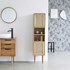 Disposez une vasque sur ce petit meuble de salle de bain en bois de mindy et cannage. Il est pratique grâce à ses multiples rangements. Le tiroir du haut est amovible. Caractéristiques : Matière : mindy - Couleur : naturel - Hauteur : 75 cm - Longueur : 85 cm - Largeur : 50 cm - Poids : 23 kg - Poids maximum supporté : 30 kg - Garantie : 2 ans - Montage : pieds à monter.