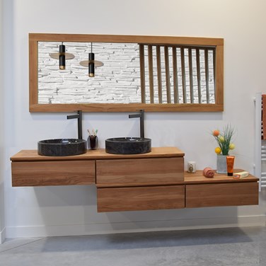 Vous disposez d'une belle surface pour aménager une salle de bain familiale, optez pour le meuble suspendu Khaleï Concept 225.