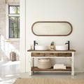 Ce meuble sous vasque conçu en pin recyclé pour un style campagne authentique dispose d'une étagère et de trois tiroirs vous permettant un maximum de rangements pour vous et vos enfants. Caractéristiques : matière : pin recyclé - Couleur : patine blanchie effet used - Hauteur : 78 cm - Largeur : 150 cm - Profondeur : 50 cm - Poids : 44 kg - Poids maximum supporté : 80 kg - Garantie : 5 ans - Montage : livré monté. Les + : inspiration bord de mer – rangements – pin recyclé.