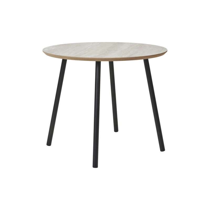 Collection BIM : Table basse décor TravertinMinéralité tendance. Cette table basse travertin au look industriel chic est une pièce forte. Son plateau effet travertin est soutenu par une structure en métal. L'alliance parfaite de la matière et de la ligne pour un salon moderne et texturé.Dimensions : L. 55 x l. 55 x H. 45 cm