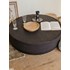 Sublimez votre salon avec cette table basse originale conçue à partir d'un ancien étui de roue de calèche, habillée d'un cuir noir d'origine posé sur une structure en bois. Son esprit vintage et artisanal installe une présence narrative et des matières contrastées, offrant une surface basse idéale pour accueillir tasses, livres et objets décoratifs. La patine naturelle du cuir raconte son histoire et ajoute une élégance sobre.