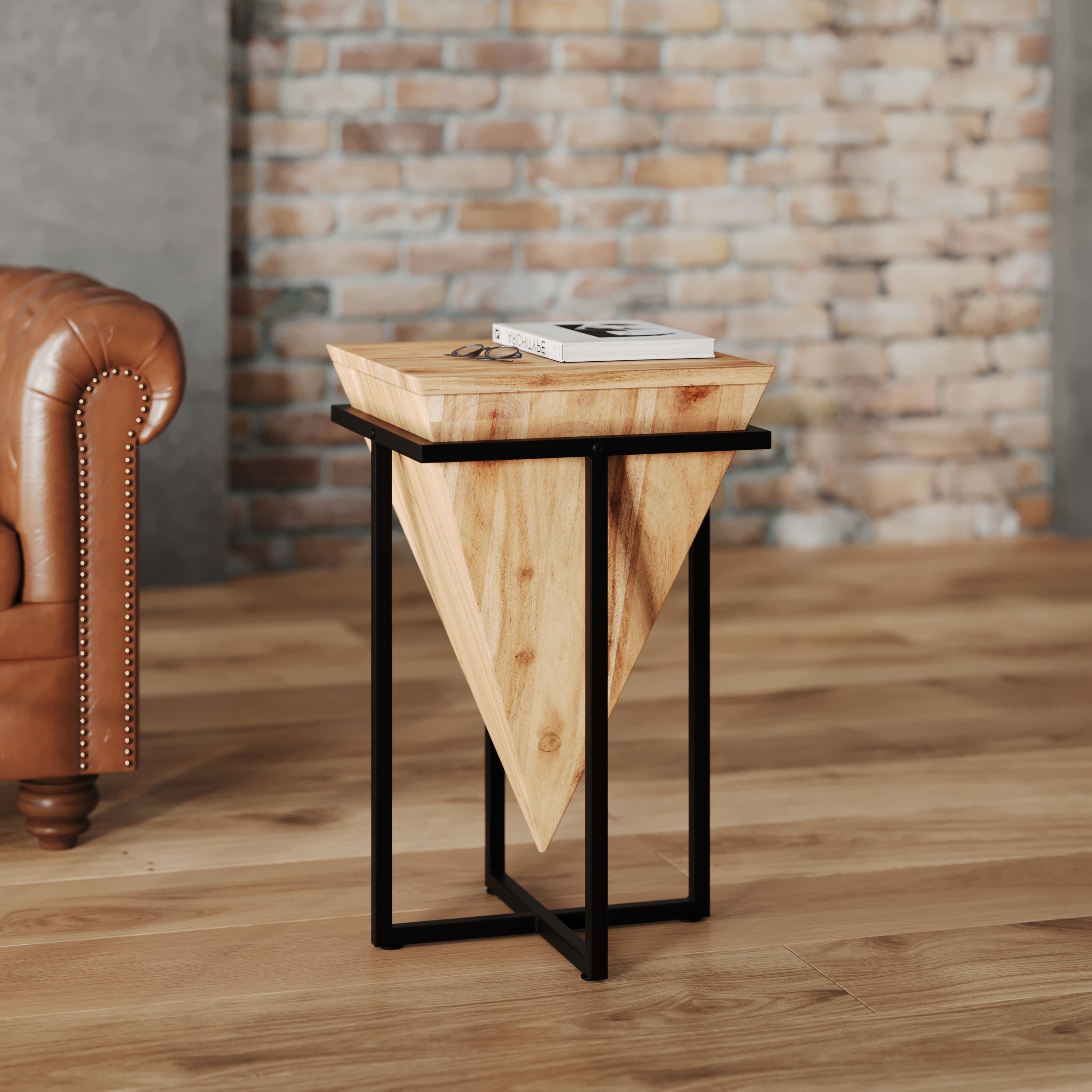 Dans votre pièce à vivre, elle sera idéale pour créer la surprise. Sculpturale et sobre, elle offre le plaisir d'une console à l'allure originale. Table d'appoint près d'un fauteuil, objet déco à part entière, elle sera un must.-Dimensions : Dimension du cône : 41 x 41 x 63 cmHauteur totale : 67 cmCône en bois surélevé de 9 cmMatière : Bois d'acacia et métalInfos complémentaires : Poids maximum supporté : 10 kg.