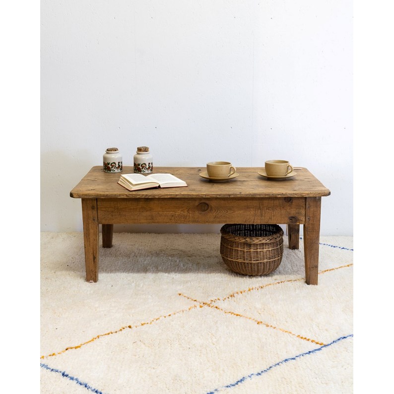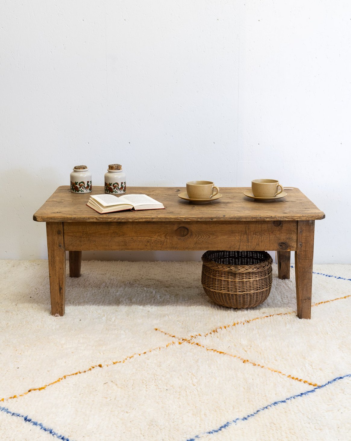 Adoptez cette table basse en pin, simple et lumineuse, dont la structure invite à une mise en scène décontractée du séjour. Son plateau offre de la place pour tasses, livres et objets décoratifs, tandis que ses proportions s'intègrent facilement devant un canapé ou au centre d'un salon. Sa patine naturelle apporte une touche chaleureuse et authentique, avec un esprit campagne contemporaine. Quelques traces du temps présentes qui racontent son histoire.