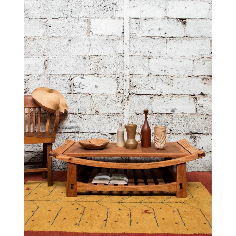 Adoptez cette table basse en bois aux contrastes clairs et foncés, dont la silhouette organique aux bords incurvés adoucit l'ensemble. Son plateau bas et ses proportions allongées offrent une surface généreuse pour livres, plateau de service ou plantes, idéale au centre d'un salon convivial. Le grain naturel du bois souligne une élégance sobre et chaleureuse, tandis que la combinaison des teintes crée une présence discrète mais affirmée.