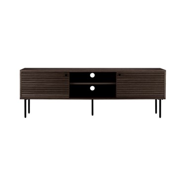 Collection LOGIA : Banc TV Chêne FuméMédia et design. Ce banc TV chêne fumé de 150 cm offre une ligne basse et élégante. Le chêne fumé, les lattes en façade et le piètement en métal créent un style industriel chic. L'alliance parfaite de la matière et de la ligne pour un salon moderne.Dimensions : L. 150 x l. 40 x H. 50 cm