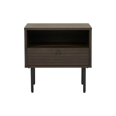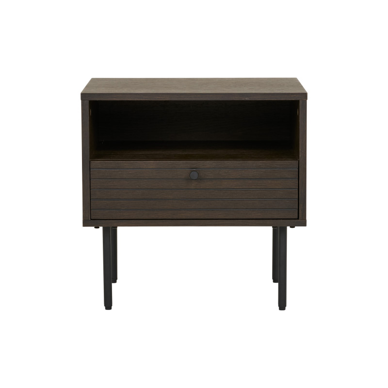 Collection LOGIA : Table d'appoint Chêne FuméDesign et contraste. Cette table d'appoint chêne fumé combine le bois sombre et la finesse du métal noir. Idéale comme bout de canapé pour un style contemporain. L'alliance parfaite de la matière et de la ligne pour un coin sophistiqué.Dimensions : L. 50 x l. 40 x H. 50 cm