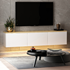 Lumi meuble tv led suspendu avec placards blanc et plateau bois 160cm