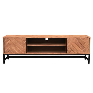 Meuble tv à motifs chevrons en bois massif et métal noir l158 cm stick