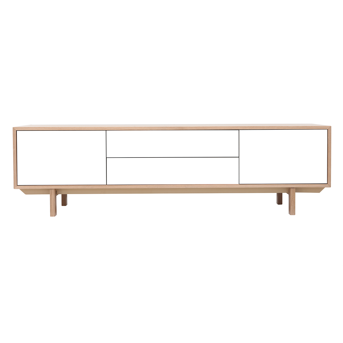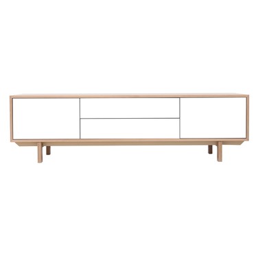 Le meuble TV SID associe le bois clair au blanc pour des couleurs naturelles et lumineuses qui donneront de suite un coup d'éclat et de lumière à une pièce un peu trop sombre. Si vous aimez le style nordique/scandinave, ce meuble contemporain sublimera votre intérieur.