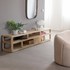 Meuble TV de la collection Aëlys en bois de manguier. Ses niches ouvertes offrent un rangement pratique pour équipements multimédias et objets déco, tout en mettant en valeur la beauté naturelle du bois. Un meuble solide et élégant, parfait pour un salon convivial et moderne.