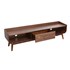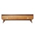 Les lignes arrondies et épurées de ce meuble TV sont très agréables, elles apportent de la douceur à votre intérieur ainsi qu'un look vintage tendance. Le meuble TV HALLEN se compose d'un long plateau de 180 cm ainsi que de deux niches et un tiroir central. Pour plus d'esthétisme, deux trous à l'arrière du meuble ont été réalisés pour laisser passer les câbles de vos appareils électroniques. Ce meuble TV est composé de panneaux de fibres de bois placage noyer et de bois de noyer massif pour le piètement.