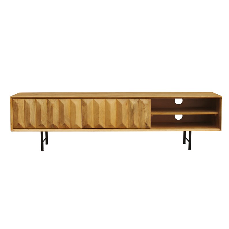 Meuble tv en bois clair manguier massif gravé l160 cm agra