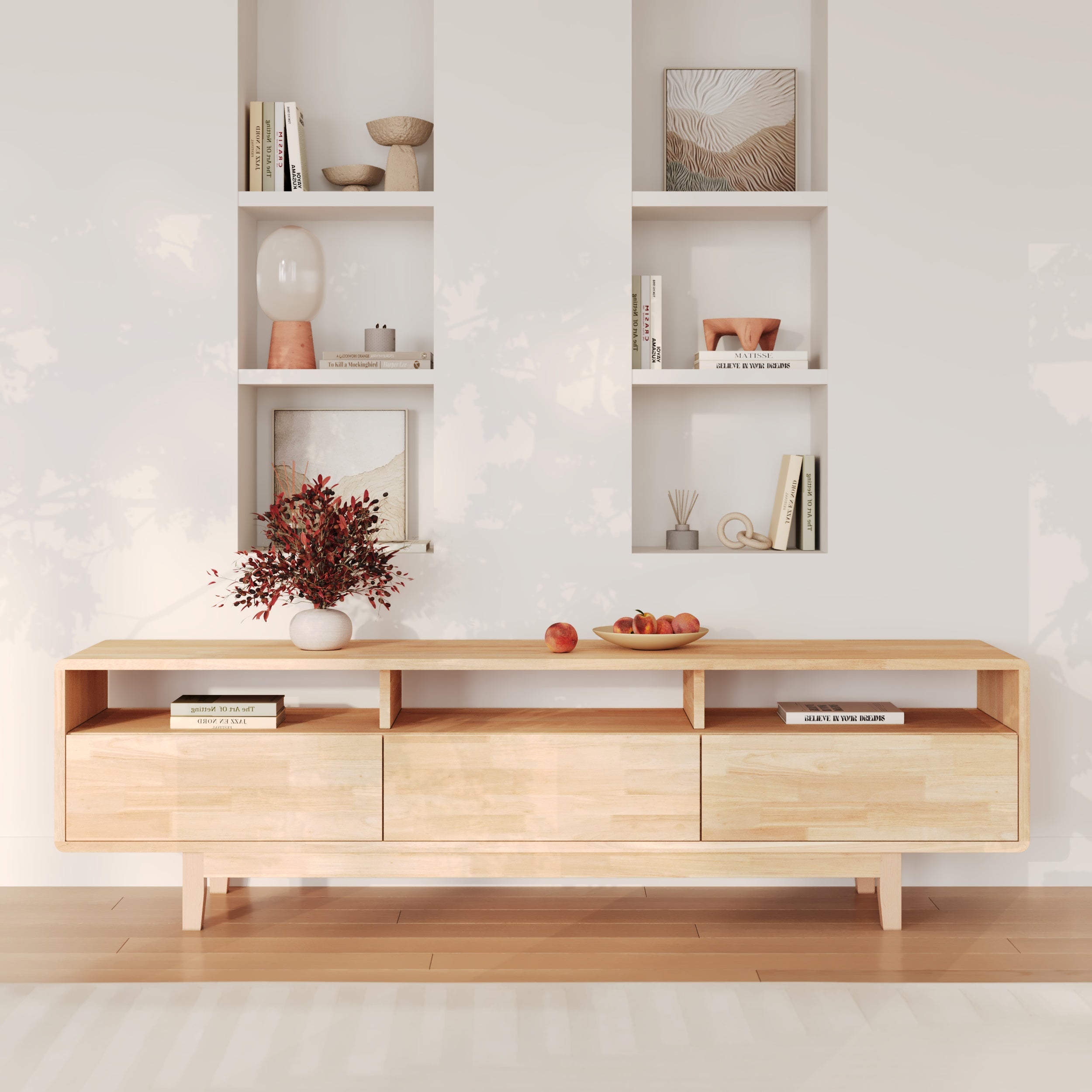 Meuble tv en bois d'hévéa massif effet blanchi - gisèle