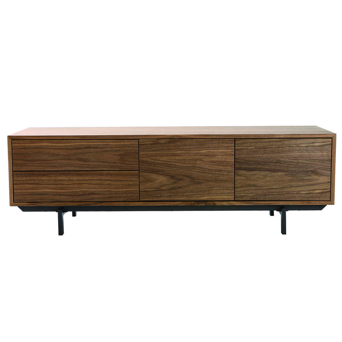 Ce meuble TV en bois foncé est composé de panneaux de fibres de bois placage noyer , ce qui lui donne une touche vintage et chaleureuse. Cependant, les pieds en métal noir lui confèrent une touche de modernité qui transforme ce meuble en une pièce de design intemporel !